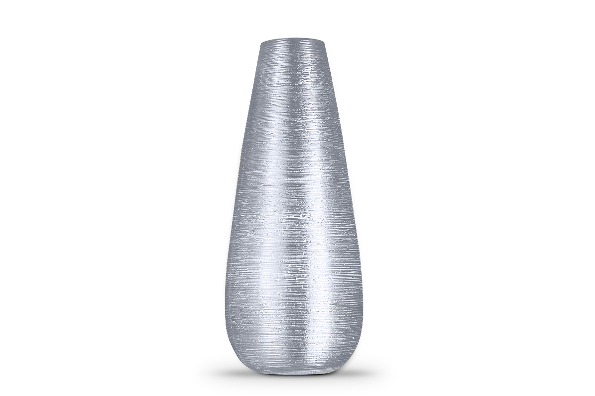 Opis produktu Wazon MOLIS srebrny WYMIARY [CM]: • Wysokość: 32 • Średnica: 14 MATERIAŁ: ceramika KOLOR: srebrny INSTRUKCJA UŻYTKOWANIA: • przeznaczony do kontaktu z żywnością
