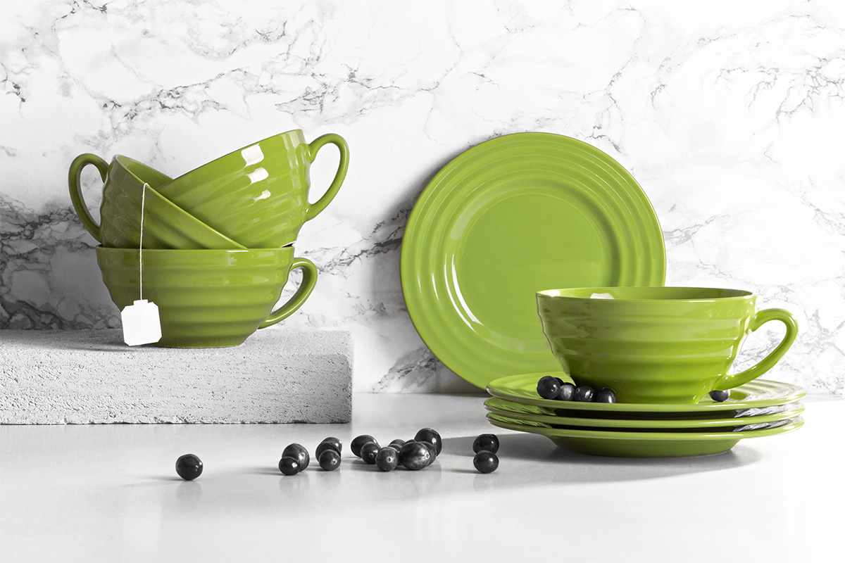 Opis produktu Zestaw herbaciany, 4 os. (8 el) SCILLA zielony SCILLA collection Lekka i Nowoczesna kolekcja ceramiki zaprojektowana przez Konsimo. Popołudniowa