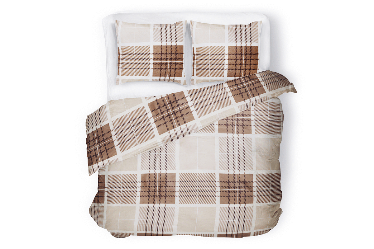 Opis produktu Komplet pościeli PRUNEL brązowy/beżowy WYMIARY [CM]: POSZWA NA KOŁDRĘ: 200×220 POSZEWKA NA PODUSZKĘ: 70×80 INFORMACJE O PRODUKCIE: LICZBA POSZEWEK NA PODUSZKĘ: 2 szt. MATERIAŁ: 100
