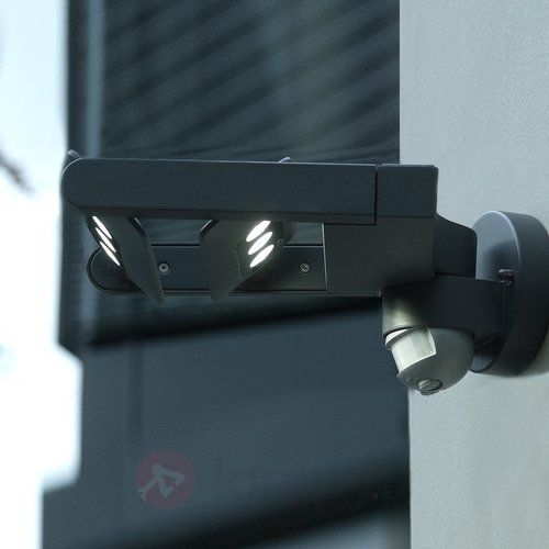 Opis produktu Eco-Light Keiran 3006163 Nowoczesny reflektor ścienny zewnętrzny KEIRAN z 2 x 3 diodami CREE-LED i czujnikiem ruchu Płaski, regulowalny reflektor ścienny Keiran z